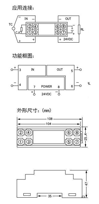 熱電偶K E J T B R S N直接借口;冷端補償功能、線性化;三端口隔離,DIN T型導(dǎo)軌安裝。 |