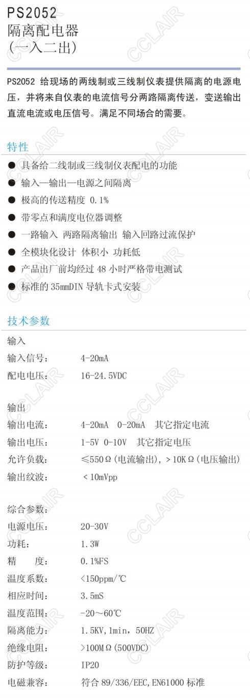 PS2052隔離配電器(一入二出)