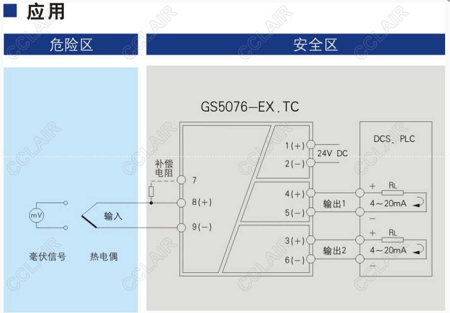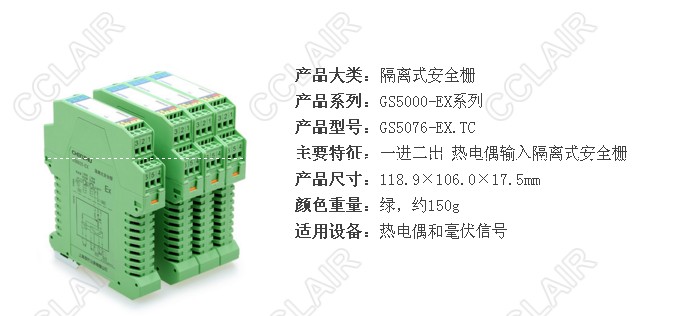 熱電偶輸入隔離式安全柵,將現(xiàn)場二線制、三線制熱電阻信號轉(zhuǎn)換成0/4~20mA電流信號或0/1~5V電壓信號,從危險區(qū)隔離傳輸?shù)桨踩珔^(qū)。它是智能型的,可通過計算機對熱電阻的分度號、量程范圍等進(jìn)行組態(tài)。該產(chǎn)品需要獨立供電,電源、輸入和輸出三隔離。