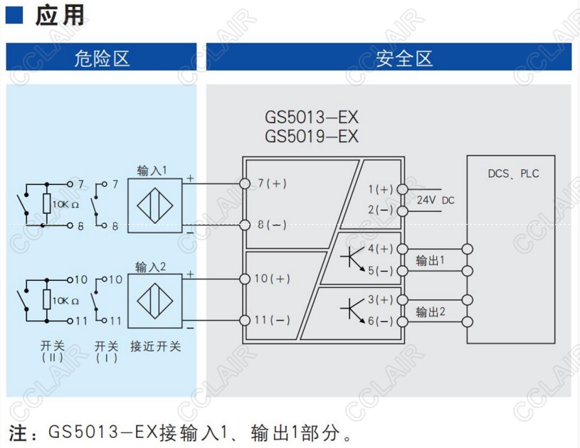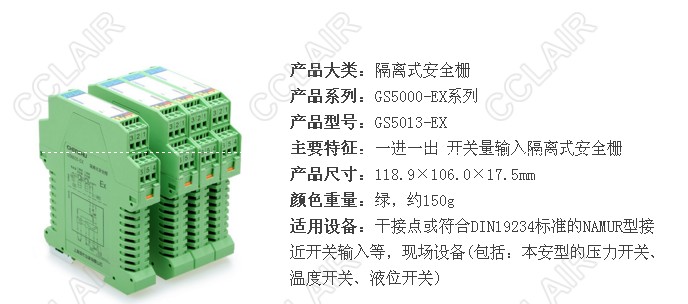 開關量輸入隔離式安全柵,接收來自危險區(qū)的干接點或符合DIN19234標準的NAMUR型接近開關輸入, 通過安全柵隔離傳輸?shù)桨踩珔^(qū)晶體管輸出,它具有輸入斷線檢測報警指示及輸入輸出反相設置功能。該產(chǎn)品需要獨立供電,電源、輸入和輸出三隔離。