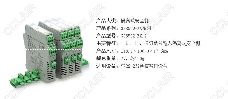 GS8592-EX.2 一進(jìn)一出 RS-232輸入RS-232輸出隔離式安全柵