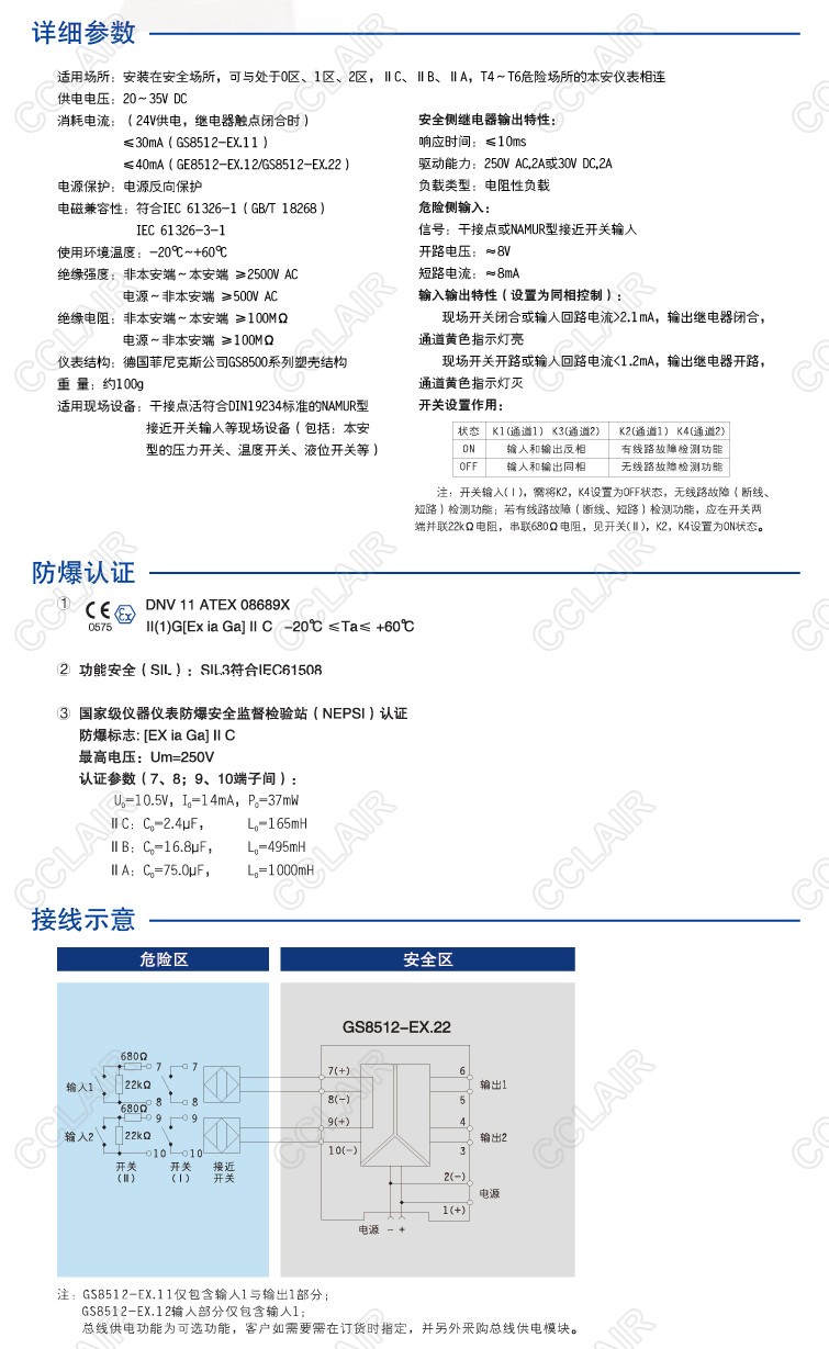 GS8512-EX.12 一進(jìn)二出 開關(guān)量輸入,繼電器輸出隔離式安全柵