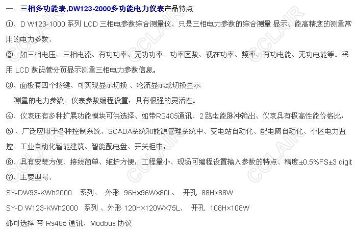SY-DW123-KWh2000,SY-DW123T-KWh2000,DW123-KWh2000,DW123-2000多功能電力儀表