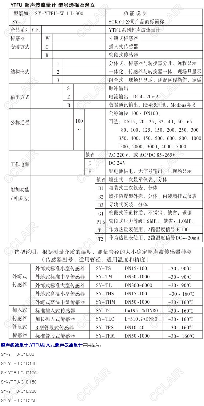 SY-YTFU-C1D80,SY-YTFU-C1D100,SY-YTFU-C1D125,YTFU插入式超聲波流量計
