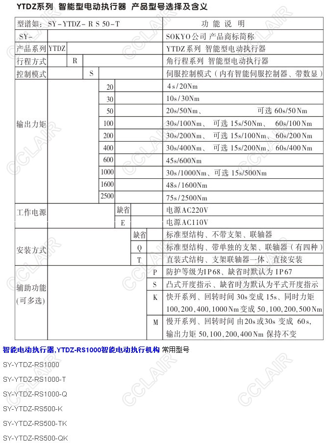 SY-YTDZ-RS1000,SY-YTDZ-RS1000-T,SY-YTDZ-RS1000-Q,YTDZ-RS1000智能電動(dòng)執(zhí)行機(jī)構(gòu)