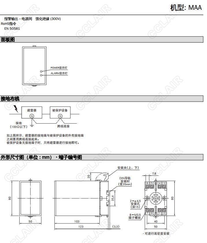 MAA-100/MAA-200,最大負(fù)載5A 壽命顯示功能避雷器