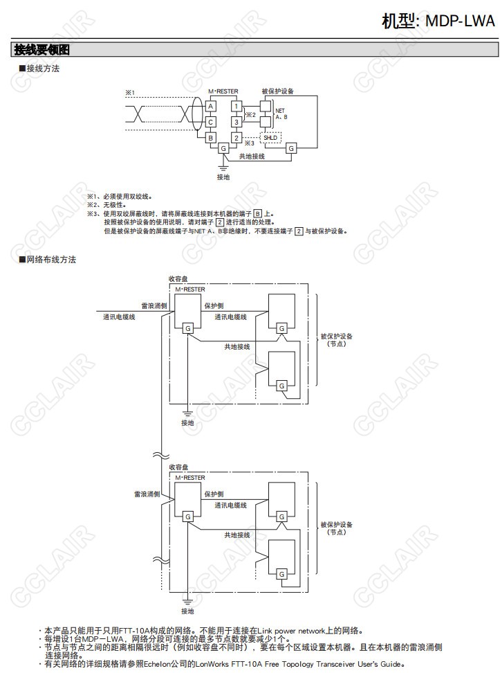 MDP-LWA,MDP-LWA/A33,MDP-LWA/Q, LONWORKS(FTT-10A)用 插入型避雷器