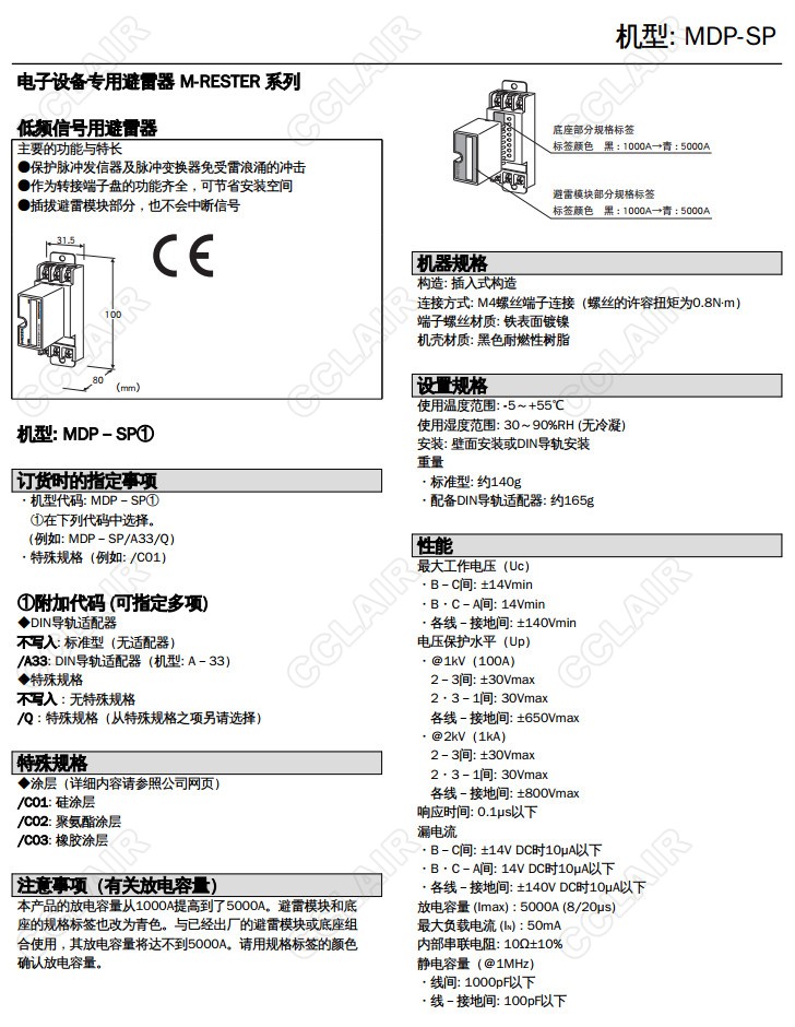 MDP-SP,MDP-SP/A33,MDP-SP/Q,低頻信號(hào)用 插入型避雷器