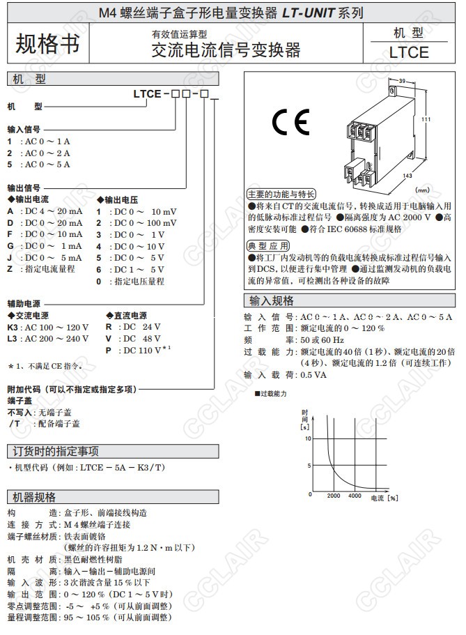 LTCE,LTCE-5A-K3/T,LTCE-1,LTCE-2,LTCE-5,交流電流信號變換器(有效值運(yùn)算型)