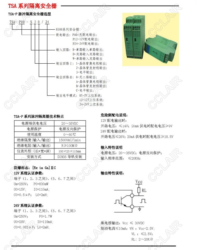 TSA-P00-S,TSA-P00-D,TSA-P00-W,TSA-P12-S,TSA-P12-D,TSA-P脈沖輸入安全柵