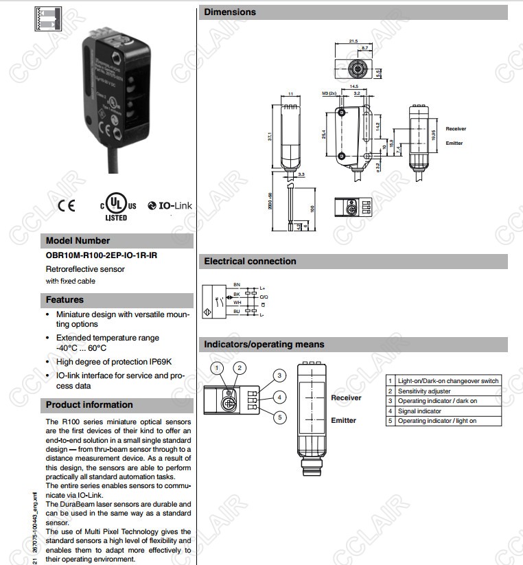 OBR10M-R100-2EP-IO-1R-IR,反射板型光電開(kāi)關(guān)