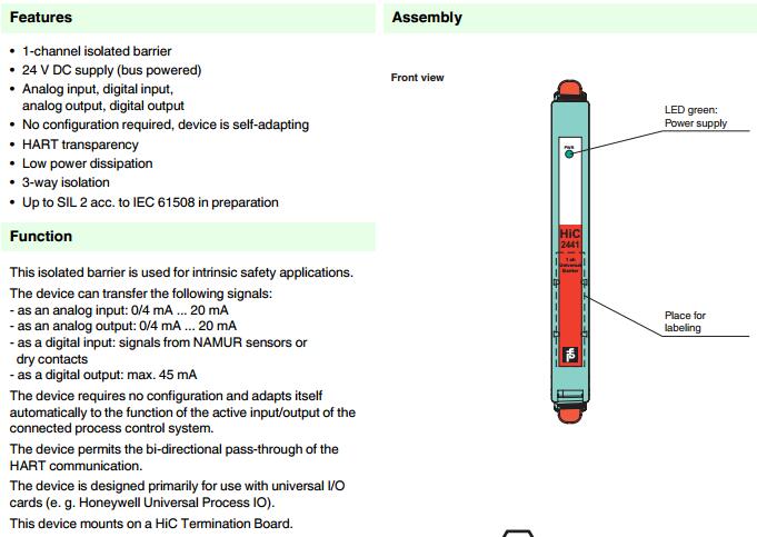 HiC2441,模擬量輸出安全柵