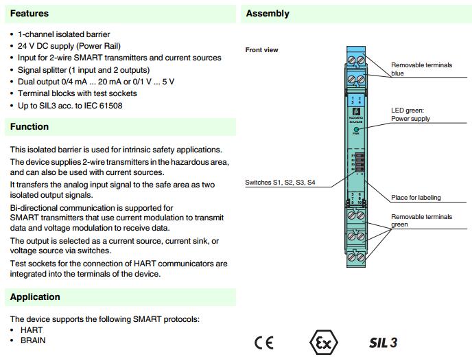 KCD2-STC-Ex1.2O.ES,模擬量輸入安全柵
