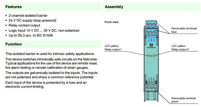 KFD0-RO-Ex2,繼電器輸出安全柵