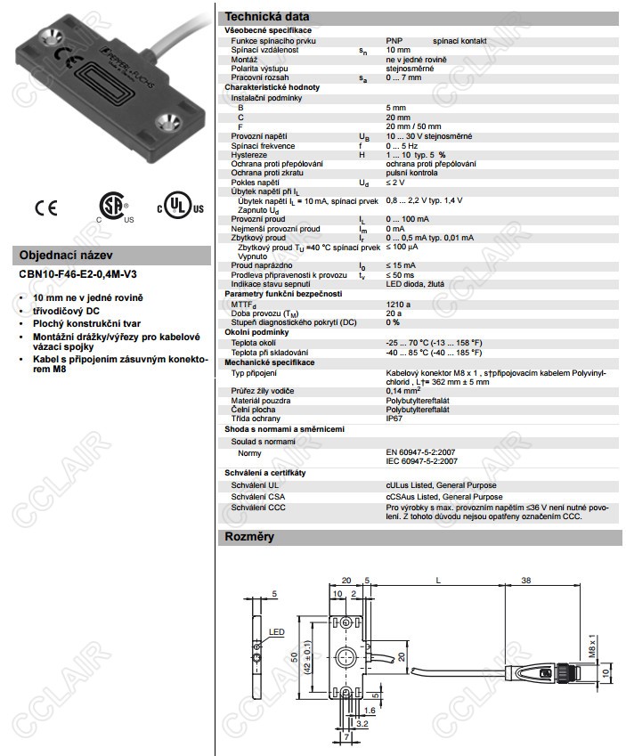 CBN10-F46-E2-0,4M-V3,電容式接近開關