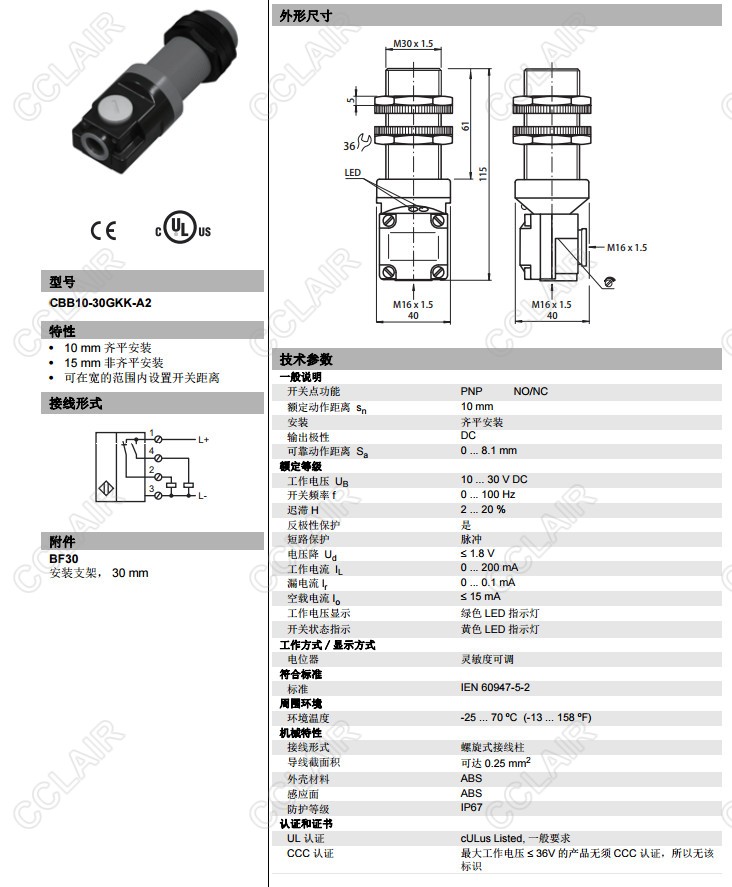 CBB10-30GKK-A2,電容式接近開關(guān)