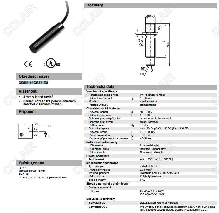 CBB8-18GS75-E2,電容式接近開(kāi)關(guān)