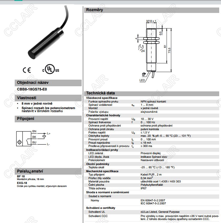 CBB8-18GS75-E0,電容式接近開關(guān)