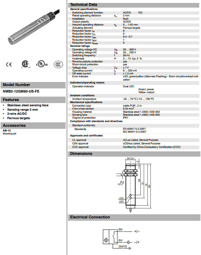 NMB2-12GM80-US-FE電感式接近開關(guān)