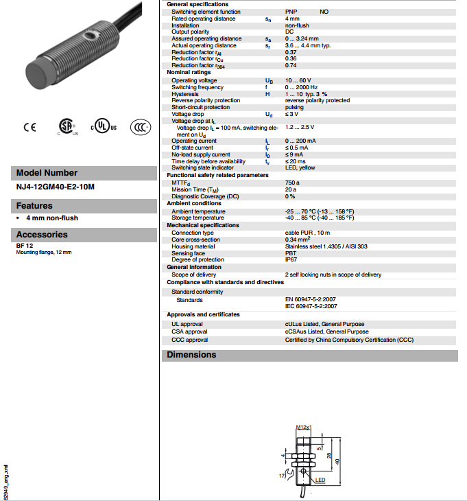NJ4-12GM40-E2-10M,電感式接近開(kāi)關(guān)