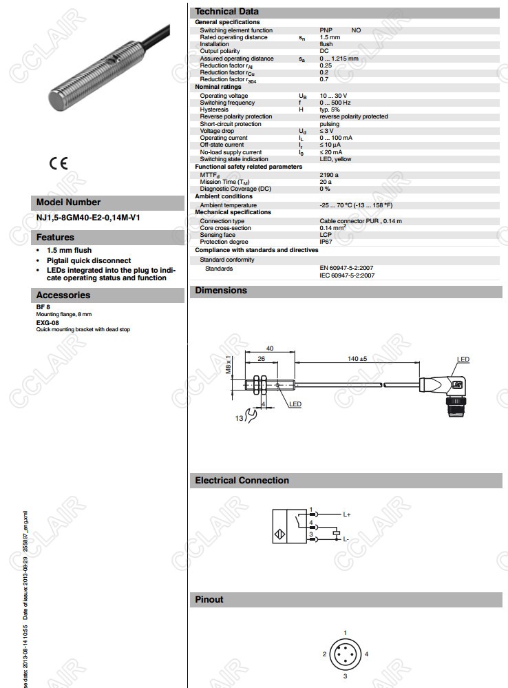 NJ1,5-8GM40-E2-0,14M-V1,電感式接近開關