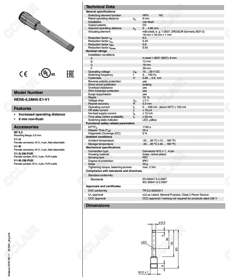NEN6-6,5M45-E1-V1,電感式接近開關(guān)