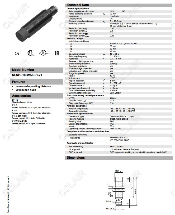 NEN20-18GM50-E1-V1,電感式接近開關(guān)