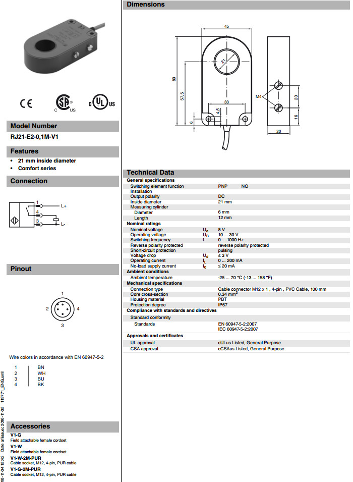 RJ21-E2-0,1M-V1電感式接近開關