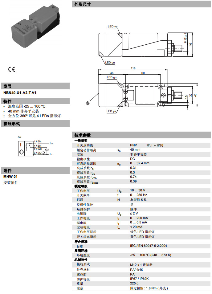 NBN40-U1-A2-T-V1電感式接近開關(guān)