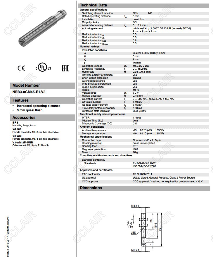 NEB3-8GM45-E1-V3,電感式接近開關(guān)