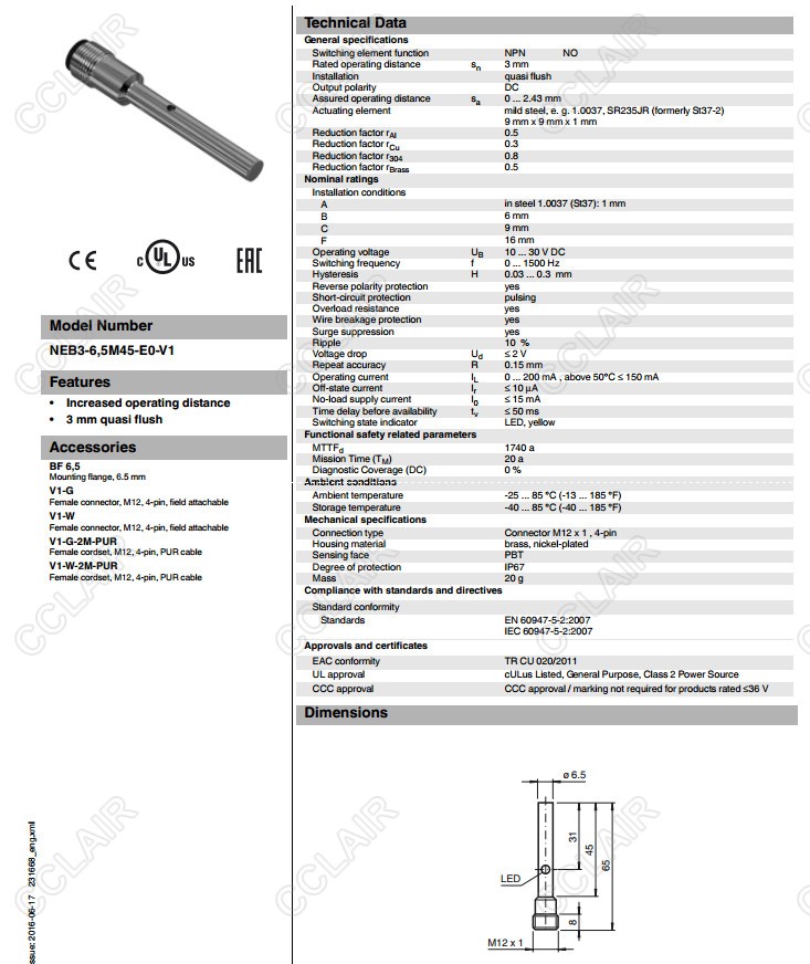 NEB3-6,5M45-E0-V1,電感式接近開關(guān)