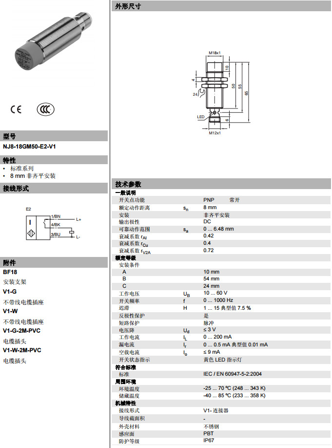 NJ8-18GM50-E2-V1電感式接近開(kāi)關(guān)