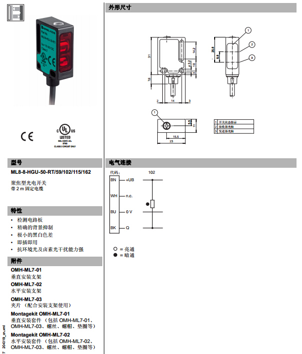 ML8-8-HGU-50-RT/59/102/115/162,漫反射型傳感器
