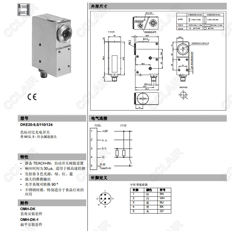 DKE20-9,5/110/124,色標(biāo)對比度傳感器
