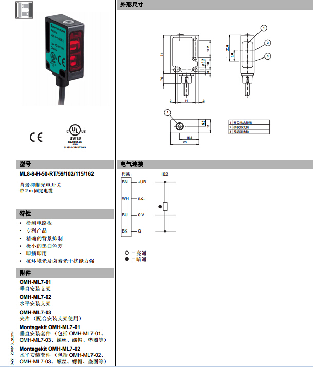 ML8-8-H-50-RT/59/102/115/162,漫反射型傳感器
