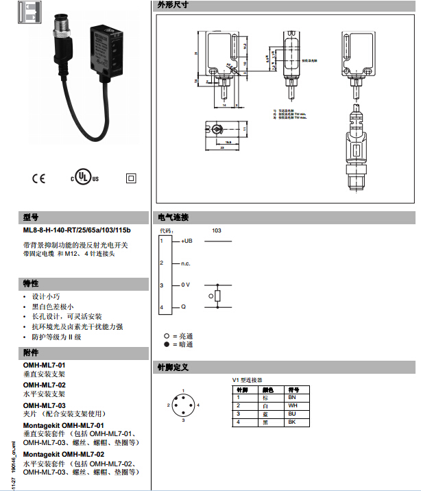 ML8-8-H-140-RT/25/65a/103/115b,漫反射型傳感器