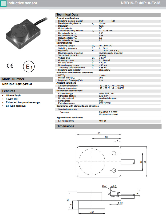 NBB15-F148P10-E2-M,NBB15-F148P10-E2-M-150MM-3DT04