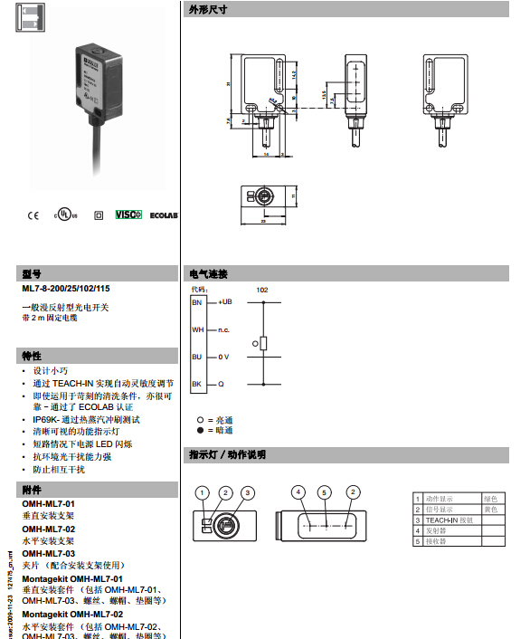 ML7-8-200/25/102/115,漫反射型傳感器