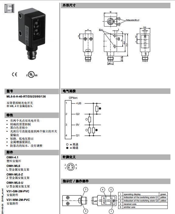 ML6-8-H-40-RT/DS/25/95/136,漫反射型傳感器