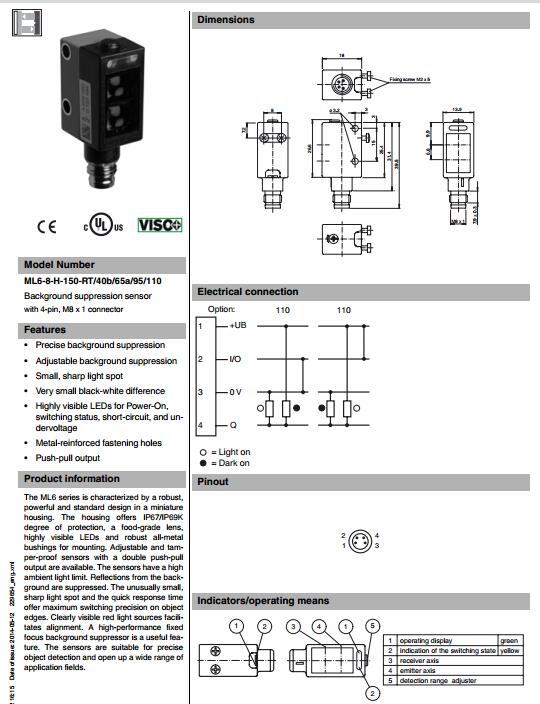 ML6-8-H-150-RT/40b/65a/95/110,漫反射型傳感器