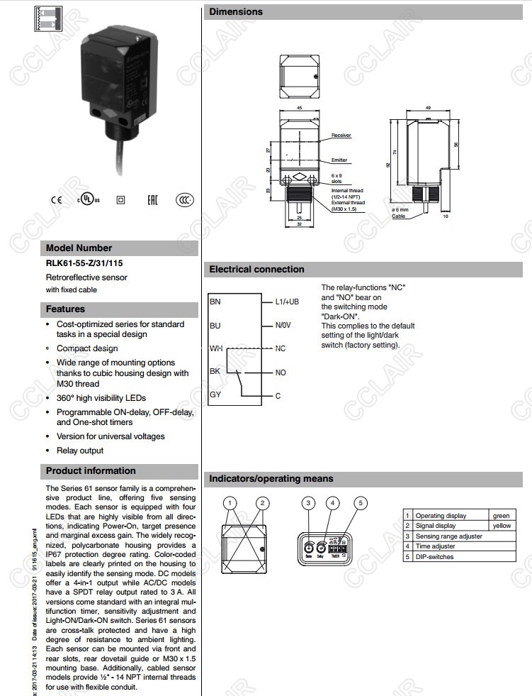 RLK61-55-Z/31/115,RLK61-55-Z/31/115-5M,反射板型傳感器