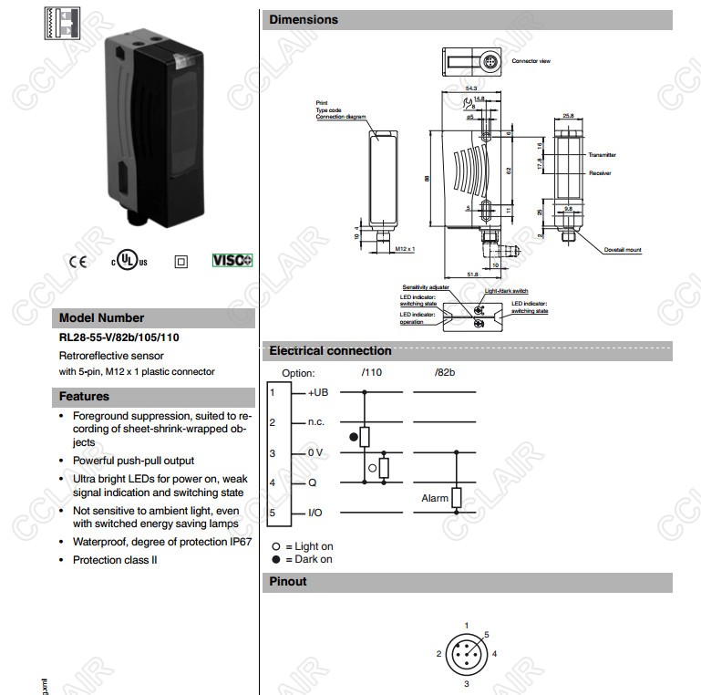 RL28-55-V/82b/105/110,反射板型傳感器