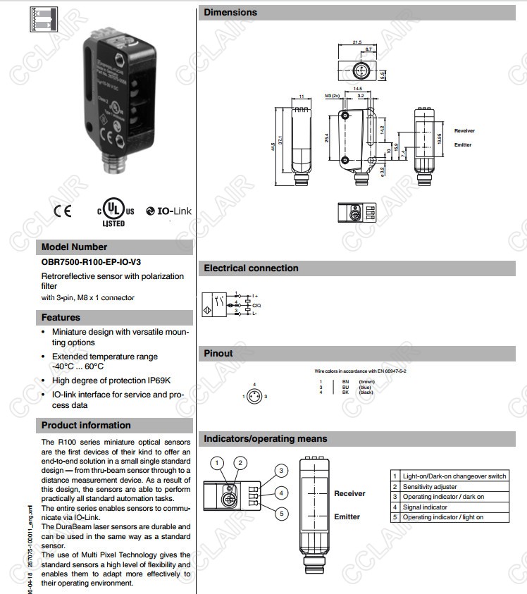 OBR7500-R100-EP-IO-V3,反射板型傳感器