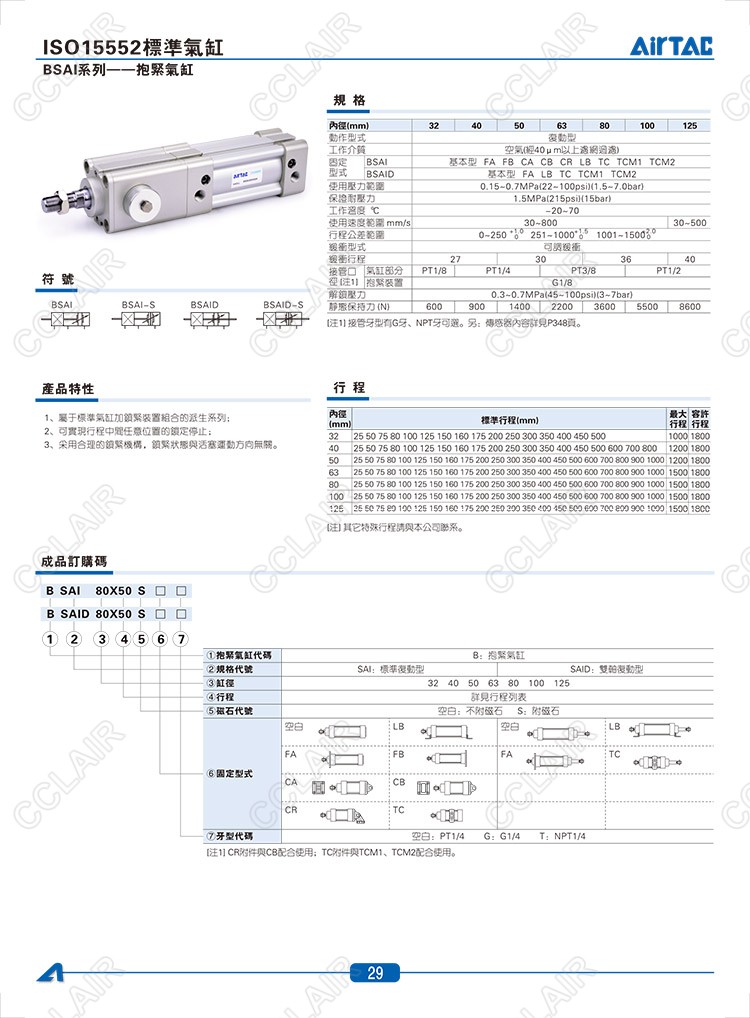BSAI32*25,BSAI32*25-S,BSAI32*50,BSAID32*25,BSAID32*25-S,BSAID32*50,AIRTAC亞德客抱緊氣缸