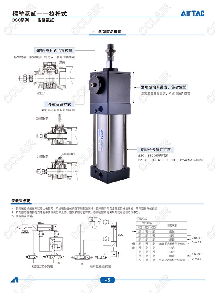 BSC32*25,BSC32*25-S,BSC32*50,BSCD32*25,BSCD32*25-S,BSCD32*50,AIRTAC亞德客標準氣缸-拉桿式