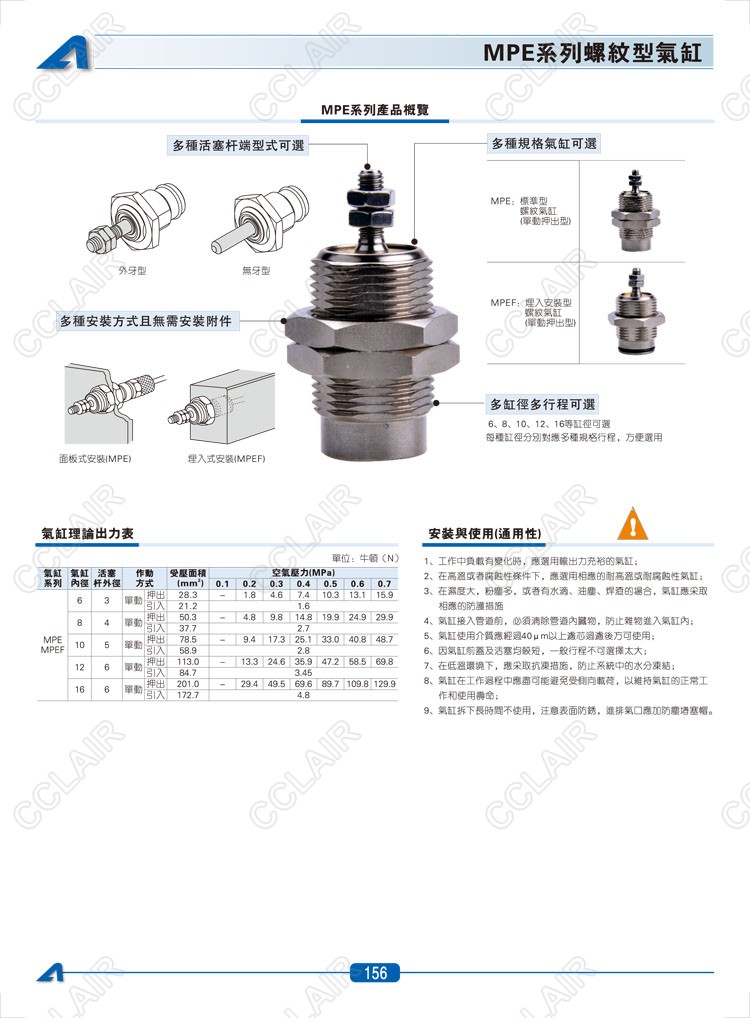 MPE6*5,MPE6*5-S,MPE6*10,MPE6*10-S,MPEF6*5,MPEF6*5-S,MPEF6*10,MPEF6*10-S,AIRTAC亞德客螺紋型氣缸