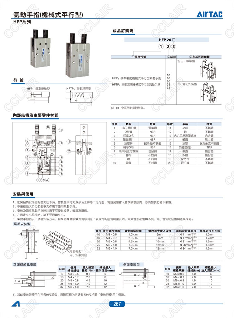 亞德客AIRTAC,HFP10,HFP10-N,HFP16,HFTP16-N,HFTP20,HFTP20-N,氣動手指