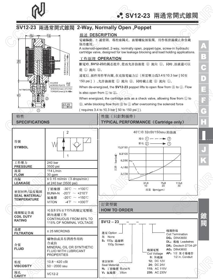 Northman北部精機,兩通常開式錐閥SV12-23S-N-0-DG,SV12-23S-N-0-DL,SV12-23S-N-115-DR,SV12-23S-N-115-AG,SV12-23S-N-115-AP,SV12-23S-V-12-DG,SV12-23S-V-12-DL,SV12-23S-V-230-DR,SV12-23S-V-230-AG,SV12-23S-V-230-AP