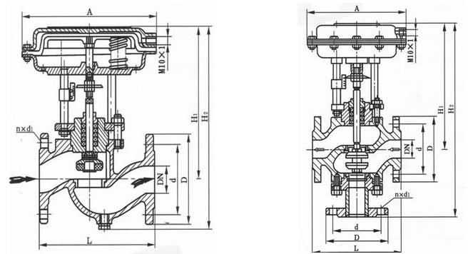 本系列產(chǎn)品有薄膜式、活塞式兩種。閥體結構有單座、套筒、雙座(二位三通)三種,密封形式有填料密封和波紋管密封兩種,產(chǎn)品公稱壓力等級有PN10、 16、40、46四種,公稱口徑范圍DN20~200mm。適用流體溫度由-60~450℃。泄漏量等級為IV級或VI級。流量特性為快開。