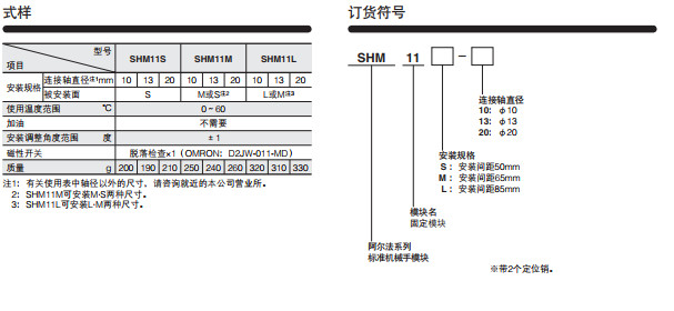 SHM11S-10,SHM11S-13,SHM11S-20,SHM11M-10,SHM11M-13,SHM11M-20,標(biāo)準(zhǔn)機(jī)械手模塊--固定模塊